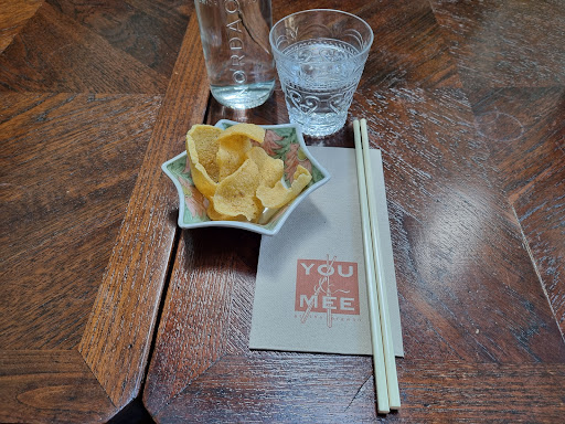 Upon sitting down, the lovely scent of pandan filled my nose. I had to offer the pandan drinks as a result. They didn't really taste like much but were incredibly aromatic. I was also offered prawn (?) crackers with my drinks.