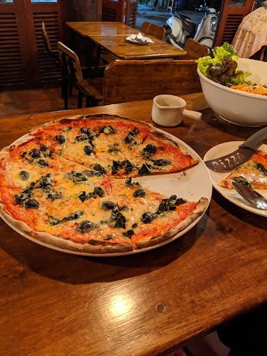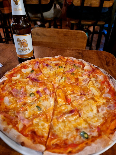 The best pizza place in Pai. The place isn’t really that for fine dining and formal seating but the pizza here, it’s so savory and tasty. It’s like a perfect combination of Italian pizza and American style. Crust is fresh and somehow thin, balanced toppings as well and portions are big which is worth the price you pay for. Service is so good. Sometimes, the owner goes and gives free bread starter to every tables. It may get really crowded and full every night though so expect to wait some time or better book ahead. Definitely worth trying the pizza here. First try and we’ve already been dining almost...