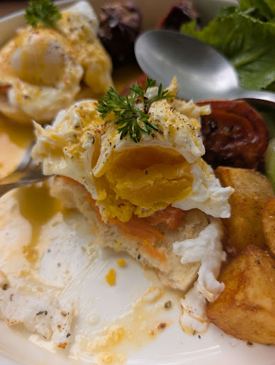 Unfortunately the food just isn't it. I ordered the sea bass rice soup which was decent, but nothing special for the 160bht price tag. My partner on the other hand had probably the worst eggs benedict of his life lol. The english muffin was stale, poached eggs were overcooked, the sauce wasn't emulsified and was watery, and they also don't provide knives? It was quite funny seeing him try to eat his food with a fork and spoon though 😂