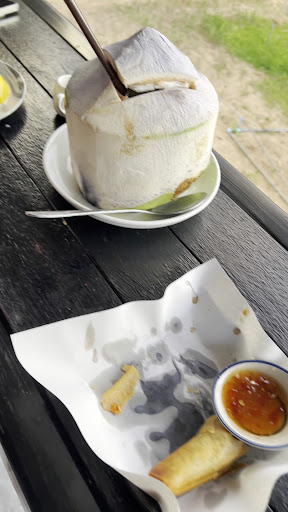 ย ย ย Read moreStopped by this coffee shop on our way back from the bamboo bridge and it was much better than we expected! We got the mango sticky rice, spring rolls (both soooo good), fresh coconut and a green tea. The tea was bright green and artificial tasting - I had expected a standard green tea bag but I think they must had used some green tea powder. They had hanging chairs/hammocks and a net bed for relaxing in. If it wasnโt past sunset already we wouldโve chilled...