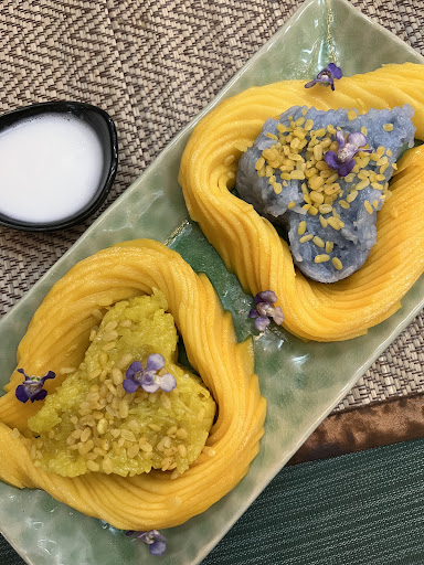 One can sit on chairs or Thai style on the floor to eat.