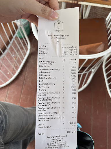 Read moreพนักงานบริการแย่มาก คือเราไม่ได้สั่งอาหารแต่สั่งน้ำ ถามพนักงานข้างบนว่านั่งข้างล่างตรงริมน้ำได้ไหม พนักงานบอกว่าได้ค่ะ นั่งได้หมดเลย แต่พอเดินไปโซนอาหาร จะไปนั่งข้างบนที่เป็นชั้น2 พนักงานบอกว่าข้างบนไม่ได้เปิดนะคะ เปิดแต่ข้างล่าง พอเราถามนั่งตรงซุ้มบอกว่าต้องนั่งริมน้ำให้เต็มก่อน ถ้าเต็มแล้วถึงจะเปิดตรงซุ้มให้นั่ง แต่พอนั่งไปสักพัก มีลูกค้าคนอื่นมาสั่งอาหารก็เห็นนั่งตรงซุ้มได้อยู่ พอถามทางไปห้องน้ำก็ตอบแบบไม่เต็มใจ ชักสีหน้าใส่ พอขอไวไฟบอกว่าไม่มีไวไฟให้ใช้ มีแต่โซนกาแฟ เหมือนมีการแยกการบริการ เหมือนเลือกบริการดีแต่เฉพาะลูกค้าที่ไปทานอาหาร เรานี่รู้สึกเหมือนถูกจับตามองเลย คือไม่ไหวละ เลยขอคิดเงิน พอจะกลับไม่มีการขอบคุณลูกค้าเลย บริการแย่มากค่ะ ครั้งเดียวเท่านั้นค่ะ ไปคาเฟ่มาก็เยอะ ไม่เคยเห็นที่ไหนพนักงานดูถูกลูกค้าขนาดนี้เลย (ผ่านทางสายตาและท่าทาง)...
