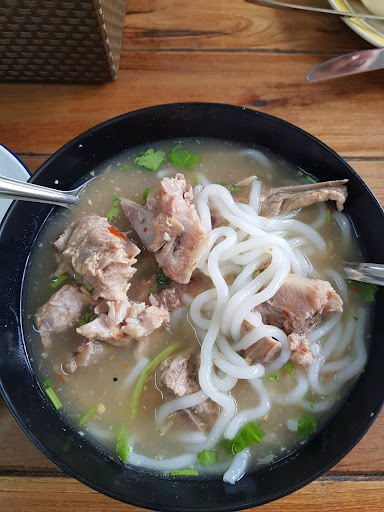 An authentic breakfast in Mahasarakham. There are influences of Vietnamese, Thai, and Fujian influences in the decor and food. When you enter there is a large bubbling vat of pork and bones to make pork noodle soup. Collagen abounds. There are toasted mini minced pork sandwiches (bánh mì) that are toasted and delicious. The lemon tea is the real deal. The pork and bones noodle soup is the star. It's clean, bountiful, and will leave you satisfied. Definitely worth a visit for an old style authentic Vietnamese breakfast. Parking is across the...