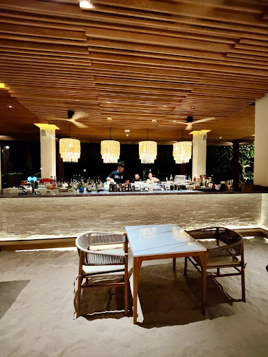 Sand Box- Beachfront Bar & Eatery was about a casual and fun vibe. We had 2 of our dinners at the newly revamped Sand Box - Beachfront Bar & Eatery. Known to be one of the most exclusive beachfront dining spots on the island, the 60 seater open restaurant with a sand base and wooden ceiling serves exciting recipes by Chef Jakub Mares. Itâs got a modern tropical design and a cool open concept kitchen. One can't miss the big beautiful bar which makes its stunning impression when one enters. Lamps not just illuminate the bar well but also make the place look phenomenal. Right opposite the bar was the open kitchen where yummy dishes were being prepared.