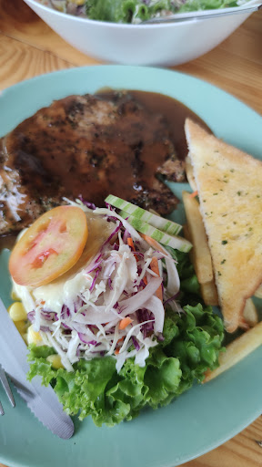 Thr chef is an expert. Pork neck cooked just pink and consistent for 2 different occasions and with 2-3 orders. Chicken breast also cooked to perfection and very tender for breast. Seasoning is well balanced except for slight heaviness with the black pepper. The beef and chicken burger patty also have well complementing ingredients, not just simple beef or chicken. Sauces for the burger very good. The coleslaw dressing also nice with a little twist and not basic salad cream. All these hearty meal for roughly 90-100baht for each dish. Thought that its not a place for coffee but its freshly grounded powder! Smoothies and coffee all very good price. The kids who are very critical asked to come back twice as...