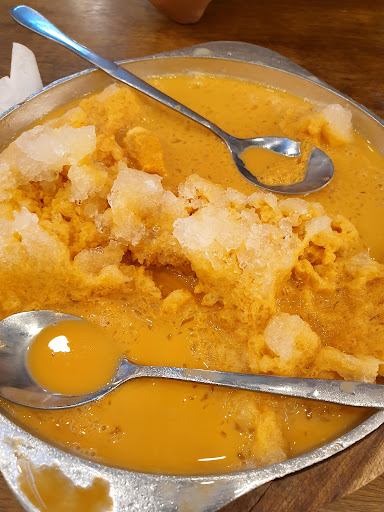 เราสั่งปังเย็นชาป๊า (ชาไทย) ราดชามาแค่ผิวนอก แต่ด้านในเป็นน้ำแข็งล้วนๆ ขนาดละลายแล้วยังมีส่วนน้ำแข็ง฿00ที่ยั฿งใ฿สอยู่เลย ราคาไม่สูง แต่ไม่คุ้ม (overvaled)