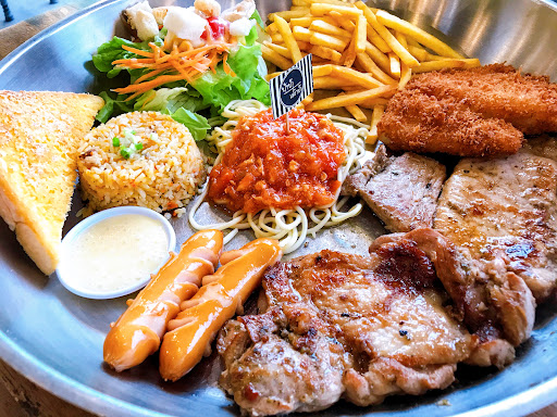 Read moreอยากกินสเต็กอิ่มคุ้มๆในราคาไม่แพงก็ร้านนี้แหละ ส่วนตัวชอบสั่งสเต็กกระทะยักษ์ (219.-) กระทะเดียวเอาอยู่ เพราะเขาเสิร์ฟสต็ก3ชิ้น(หมู,ปลา,ไก่)เลือกได้ตามใจชอบ(*ส่วนตัวชอบสเต็กไก่นุ่ม,อร่อยมาก)พร้อมไส้กรอก,สปาเกตตี้,ข้าวผัด,สลัดและเฟร้นช์ฟรายมาแน่นกระทะ ตบท้ายด้วยปังเย็นภูเขาไฟราดน้ำแดงอิ่มแบบแน่นๆไป เขายังมีเครื่องดื่มและขนมปังอีกหลากหลายให้เลือก จะกินเล่น-กินจริง คาว-หวานครบ...