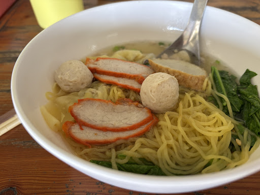 เห็นคะแนนรีวิว คือ ทำใจเลย แต่พอกิน มันไม่ได้แย่ขนาดนั้นนะ รีวิวเป็นส่วน ๆ ละกัน เส้น พอได้ เกี๊ยว หมูรสชาติดี รสไม่จัดเกิน น้ำซุป เช็ง ๆ กลาง ๆ ไม่ได้แย่ และไม่ได้จงใจหวาน ลูกชิ้น ดี หมูแดง ไม่แข็ง แต่ก็ไม่ได้นุ่ม เป็นหมูแดงที่มีรสชาติ ถือว่าใช้ได้เลย ผัก กรอบ อร่อยดี ชอบที่พอสั่งแห้ง มีชามแบบพิเศษมาให้ น่ารักดีนะ พริกป่น เผ็ดดี ดูไม่เจือปนด้วยอะไรแปลก ๆ