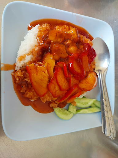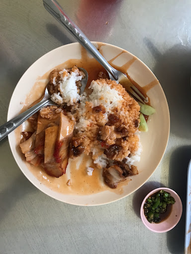 Menu Crispy pork: The texture is very good. The skin is crispy. The pork is not tough. Red pork : The texture needs to be slightly cured. The soup is bland but you can clearly smell the celery scent. The red sauce is thick and sweet. The highlight is the chili in the black sauce, The restaurant uses bird's eye chilies instead of pickled chilies, which will have a spicier flavor that goes well with the red pork rice. Grilled Chicken: The grilled chicken here is grilled with red sauce. Not like in Bangkok The chicken meat is soft and not tough.