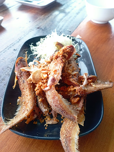 Great view of the Mekhong River and Laos. Service excellent and friendly. The seafood presented in the mixed seafood salad was not fresh, and disappointing. Laos fermented pork sausages were nice. The whole pla khapong steamed fish in lime was also not so fresh. Overall, great view, great service, food a little disappointing...
