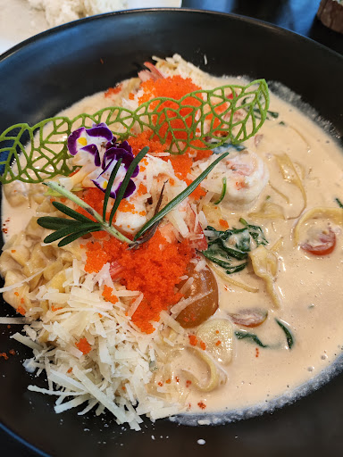 Read moreThe cozy atmosphere and friendly staff made for a pleasant dining experience. The spaghetti with shrimp roe was a standout, but be sure to eat it quickly! The southern-style yellow curry was a comforting choice, and the fresh fish was a highlight. The crab curry powder was a delightful surprise. I especially enjoyed the generous portion sizes, perfect for sharing with friends. While I wish there was a more distinct signature dish, I would definitely return for another meal. I was looking forward to a peaceful and quiet visit, but unfortunately, there was a noisy party with a lot of children. It made it difficult to relax and enjoy...