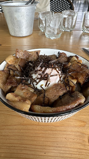 The grilled bits kakuni bowl was delicious here! Well-seasoned and had a nice balance of sweet, savory, and salty. Runny egg gave it a richness and texture that combined well with the pork and rice. The inside of the restaurant was well-decorated.