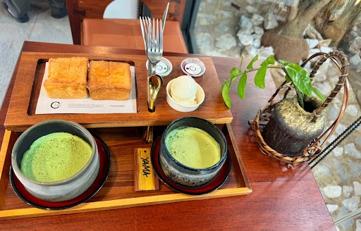 Yama Matcha Latte was nutty, creamy and full bodied, served in handcrafted cold matcha cup. Tasted great! (10/10). We also had the Asatsuyu Premium Matcha Latte which was good, but Yama was my favorite. (9/10). The Toast Set A menu with milk icecream was ok. (7/10). I give the place 5 stars for the serene atmosphere with Japanese tea house vibe and reasonable price. I would love to visit this place again.