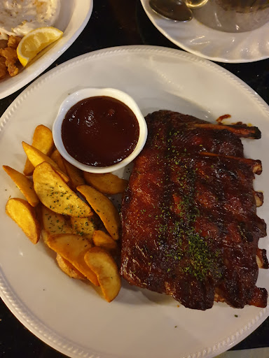 Read moreI loved this place. The food was good. The BBQ ribs and steak fries were great. The BBQ nachos, ok. My fiance got prawns and they were good. I got a buy one get one Budweiser. I loved that because I am American! The atmosphere was dreamy and all of the staff was beautiful. A band started but they were horrible musicians, but still better than no band. I would def go back with friends and have...