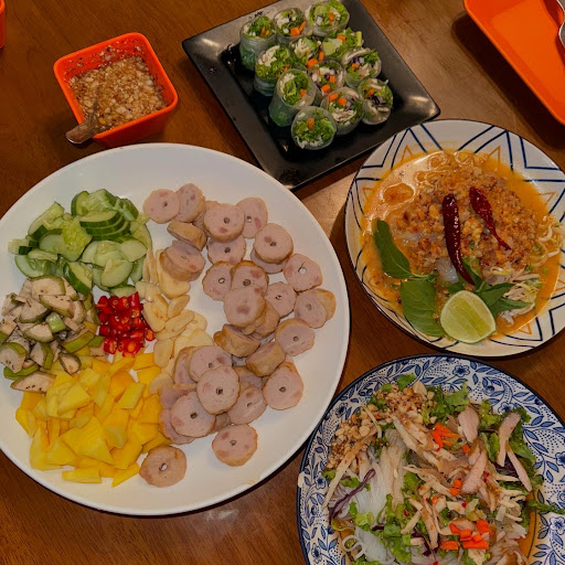 ด้านอาหาร : อาหารเวียดนามอร่อยมากทุกอย่างเลย ราคาก็น่ารัก ไปกันสี่คนสั่งมาห้าอย่างทั้งหมดแล้ว 470 บาทเท่านั้น แต่อิ่มมากๆ ส่วนตัวแนะนำเมี่ยงทอดน้ำจิ้มอร่อยถั่วเยอะ แต่ในส่วนของน้ำจิ้มแหนมเนืองไม่มีถั่วเลยอยากได้ถั่วเพิ่ม (ส่วนตัว) แต่อาหารหั่นจัดจานมาพร้อมรับประทานได้เลยง่ายและสะดวก
