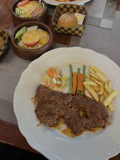 สเต๊กเนื้อคุณภาพระดับพรีเมี่ยม เมนูสเต๊กที่นี่มีหลากหลายตั้งแต่เนื้อสันใน ริบอาย ไปจนถึงทีโบน โดยใช้วัตถุดิบสดใหม่ เนื้อมีความนุ่ม ชุ่มฉ่ำ และปรุงสุกตามระดับที่ลูกค้าต้องการ น้ำซอสที่เสิร์ฟคู่ก็มีรสชาติที่ลงตัว เพิ่มมิติให้อาหารจานนี้เป็นอย่างดี