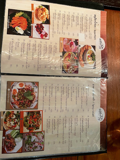 ABOUT THE RESTAURANT: The food is nice and plentiful, considering the reasonable prices. They never skimp on the most desirable ingredients like shrimps or squid. During my seven visits service was swift and, depending on the waiter, polite; all speak serviceable English. There was never any problem with bill or change. All foods and drinks were always available. I didn't notice mosquitoes. The menu is written in Thai and English and has some small pictures. You get dishes less spicy by request. They have a full range of Thai dishes, almost no Western dishes except “fish and ship”, and there seems to be no dessert whatsoever, not even a simple fruit plate that's available in many other Thai restaurants. Also som tum Khorat or standard som tum are not on the menu (ching-ching illii). They have a range of special beers including four kinds of Beerlao. There are also many temptingly priced cocktails and mocktails which may not look like what you expect, but I liked them, especially the mojito and the midori sour. The outdoor terrace always had free tables with a mix of Thai and Western visitors on weekdays and weekend. Around 7:30 p.m. a guitarist/ singer takes to the microphone, playing not much folk, but Sek Loso songs including the heart-rending “Khop-chai ching-ching”, with only few Western numbers. I liked his full, pleasant voice, but the fingerpicking needs a top-up. The volume was concert-like. Almost next to this guitarist is a TV screen often showing killing and horror movies I could well do without. As the rotund, black house dog does its slow rounds and graces each table with a thoughtful, concerned, never pleading look, one wonders what’s its...