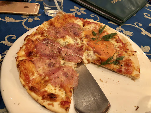 Very good pizza crust & sauce with a big fresh salad. The food was quite good. The service...not so much and all downhill from there. As another reviewer put it so succinctly...the service is ABYSMAL. Painfully SLOW...waitress constantly playing with phone...zero English. Served the salad without oil and vinegar and no black pepper mill. The pepper mill was sitting on an unoccupied table. Had to get up and distract her from her phone to ask. Then when finally delivered more than 5 minutes later, the not-olive oil was stale and the balsamic so old it had coagulated in the spout!