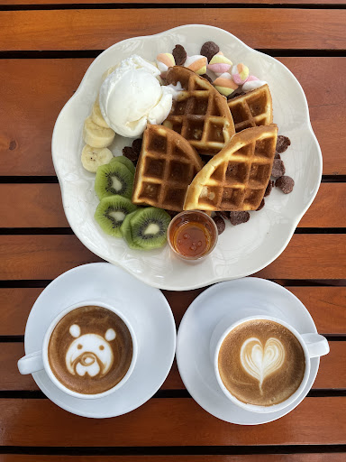 I merely searched "cafe near me" and this look the best. We had 2 hot coffee and 1 waffle. Love it though. Perfect food. As per view, the white noise from the small waterfall is super perfect you wouldn't know it just off the road. Quite old place js the only...