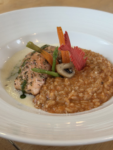 I ordered the spicy burger, salmon risotto, and pork tenderloin, and each dish was beautifully presented and cooked to perfection. The flavors were spot-on, and I have to say – the spicy burger might just be the best in the Korat area.