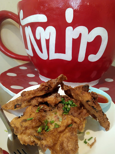 บรรยากาศ และการตกแต่ง: (4) เป็นร้านตึกแถว 2 ห้อง ไม่มีแอร์ มีภาพวาดผนังในร้านสวยงาม น่ารัก