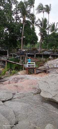 There is a reasonable amount of parking available adjacent to the road, from which you then take the path to come to the cafe and restaurant. From there there are walkways to seating areas overlooking the sea, as well as access to the rocks that make up the coast at this point.