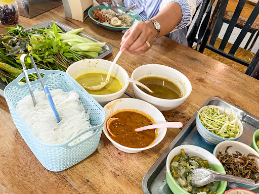 Read moreOne of the best khanom jeen restaurants that I've ever been to. The khanom jeen noodles are made fresh as you order them. There's the usual tasty curry sauces plus fantastic green chicken curry and the spicy gaeng tai pla. There's also lots of side dishes and a BIG tray of fresh vegetables, in the traditional southern Thai way. The restaurant has some other curries and rice, etc, as well as yummy baked chicken pieces on Saturdays. If you're looking for authentic southern Thai, this is one of the...