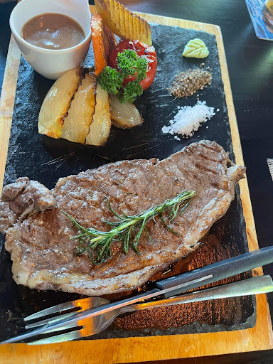 Read moreFor around 600 HKD we got roasted pork ribs (soft and tender) Mediam Steak (juicy and soft) 2 Spaghettis (I didn't try) Papaya Salad (I didn't try) Salmon Shashimi (Fresh) Cheese baked spinach (OMG the warm stretching cheese and flavors were amazing)