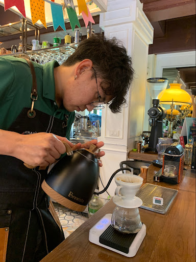 There is an extensive menu of coffee beverages using a single origin local bean grown in Nan from Suan Ya Luang mountain. It also does their own roasting.