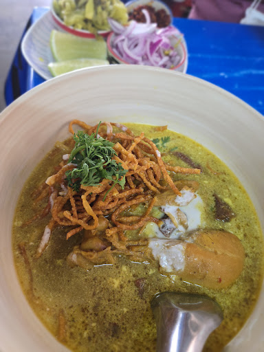 Read moreLet's start with the important stuff. The broth of the Kao soi here is the best. Deep dark yellow in colour, the flavours are deep and smokey with a good heat. We had the chicken and it was 2 pieces of absolutely falling of the bone drumstick and part thigh. A generous side dish of roasted chillies, mustard greens, onion and lime come on the side. Honestly the best Kao soi lve had. My only regret is not ordering the larger size. The owner Wanda makes a point of visiting each table to check if everything was good. Skip any hotel breakfast and come here. Across the road we also bought some traditional that desert from a stall. Bamboo sticks stuffed with sticky rice, taro and black sesame. Sooo good. If she's there just buy it at...
