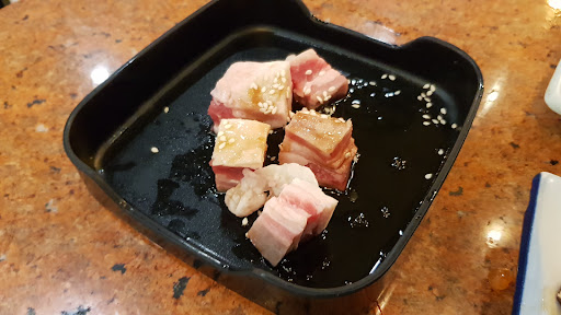 Read moreThis is not Japanese yakiniku. It's like if a Thai person saw a photo of yakiniku once and tried to recreate it from memory. The meat was chewy and of low quality and for some reason they insist on making the tare spicy. The app they use for ordering has an English button that doesn't work and tiny pictures that may or may not conform to the paper menu, so ordering is guesswork. Loud power ballads blaring from the speaker ruin the atmosphere. Especially for the price I would've...