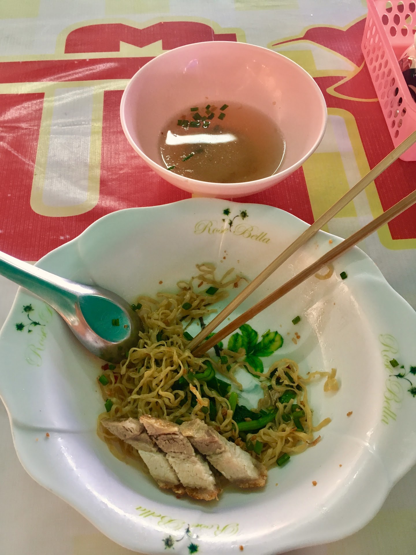อีกหนึ่ง street food ที่ต้องแวะมาลอง เช้าๆถ้ามองหาร้านกินข้าว ก็แนะนำเลยนะครับ มีทั้งข้าว ทั้งบะหมี่ หมูแดง หมูกรอบ ที่ผมชอบคือ บะหมี่แห้งหมูกรอบ เส้นหมี่จะเค็มนิดหนึ่ง เส้นบะหมี่แบนๆ เหนียวนุ่มขั้นเทพ ตัดกับหมูกรอบมันๆ หนังหมูกรอบๆ เนื้อหมูนุ่มๆ น้ำซุบที่เค็มนิดหนึ่งหวานตามหน่อยๆหอมกลิ่นพริกไทย แนะนำว่าไม่ต้องปรุงนะครับ จะได้รสชาติตามที่บอก ถ้าที่ร้านเสริฟน้ำชา แทนน้ำเปล่านะ จะฟินมาก แต่ที่จอดรถอาจจะลำบากนิดหนึ่ง เพราะร้านอยู่ข้างทาง แล้วมีป้ายห้ามจอด 06:00 - 09:00 ไม่รู้พี่จ่าจะมาแจกใบสั่งหรือป่าว แต่ถ้ามาเสาร์-อาทิตย์ ช่วงเช้าๆคงน่าจะพอได้อยู่ เพราะรถจะไม่เยอะเท่าไหร่ อีกหนึ่งร้านที่แนะนำให้มาชิมครับ ไม่เชื่อดูรูปนะครับ กะว่าจะชิมก่อนถ่ายรูป ชิมปุ๊บหยุดไม่อยู่ เหลือแต่นี้ละครับ...