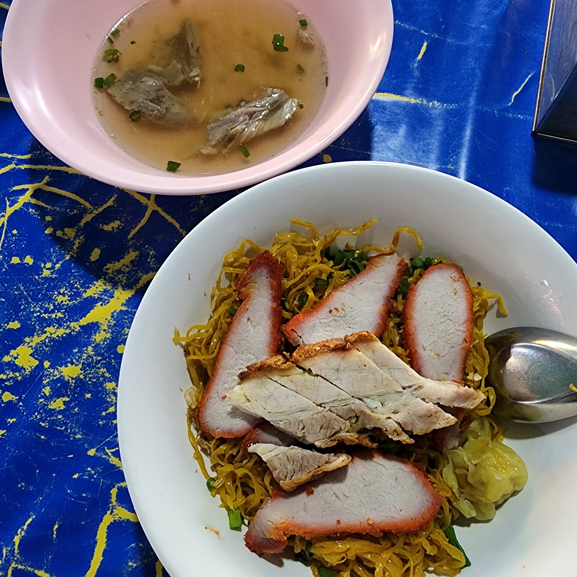 Read moreหมูแดง หมูกรอบ กุนเชียง อร่อยมาก กินกับข้าวสวยร้อนๆราดน้ำหมูแดงรสชาดกลมกล่อมเข้มข้น ไม่หวานเกินไป บะหมี่เส้นเหนียวนุ่ม ลงตัวกับหมูแดงที่หมักมาอย่างดี แต่ถ้ากินบะหมี่แห้งก็จะราดน้ำหมูแดงคนละสูตรกับข้าวหมูแดง ซึ่งน้ำหมูแดงที่ราดบะหมี่เหมือนน้ำเชื่อมสีแดง หวานมากไม่อร่อยเลย แต่คนชอบหวานอาจจะชอบ ถ้าจะขอน้ำหมูแดงที่ราดข้าวมาราดในบะหมี่ จะถูกเรียกเก็บเพิ่ม5บาท สรุปกินข้าวดีกว่า...