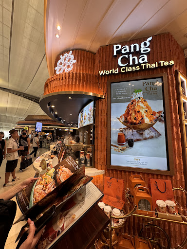 Me and my friends were interested because the storefront looked professional and clearly advertised how world class the experience would be, plus it had a Michelin guide mark as well, so we had a try. We ordered one Whipping Mousse Thai Milk Tea Caviar, one Chappuchino, one Lakkaithong Milk Tea for 195 THB each (about $6). Despite costing the same, only the caviar had decent substance and flavor plus two kinds of boba/crunchy balls in it. The other two tasted very bland and had too much ice in them; when we finished there were still 2/3 cups of ice left. It managed to taste almost like diluted Chatramue while costing 5 times more and had only half the amount. The price/ performance is unbelievably abysmal. Plus, the staff who served us had the most unbothered and robotic look on her face. After taking the order, she didn't care to tell us whether to wait at the counter or the table until we had to ask, and she didn't even speak in polite Thai. If the tea may not be up to expectation because it was an airport outlet, we would have at least expected better service.