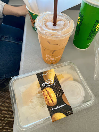 ของหวานห้ามพลาด “ข้าวเหนียวมะม่วง” เมนูซิกเนเจอร์ของ Mango Tree ที่มีคนแวะเวียนมาซื้อหิ้วขึ้นเครื่องกันคนละหลายกล่องเลยค่ะ