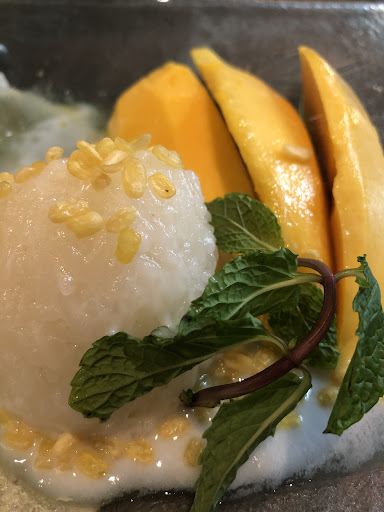 I stopped by this restaurant as I was looking for a massage to kill my time at the airport.. this is a new establishment right across from sensib thai massage. I opted out of getting a massage because the price was outrageous.. I decided to stop at this place because the hostess, Saifon was very nice and really inviting. I only had the mango sticky rice and pink guava juice, so I can only comment on these items and the general establishment. First of all, the place is tucked away from the main hallway, so it's quiet which means if you are looking for peace and quiet away from the hussle and bustle of the airport, this place will give you the serenity moment. Ok, the food.. as you know airport establishments are general more expensive than in the city for obvious reasons, so yes, it is a bit more expensive, but within airport food price range.. the mango sticky rice was ok overall.. the presentation was nicely done (sorry I forgot to take a picture to share), however I think the rice can be softer and more moist as I think the most difficult part of this dish is in the sticky rice!! The coconut sauce can be more rich. It felt like to me the sauce was thickened with starch and didn't have enough coconut, so the coconut flavor was a little lacking. The guava juice was from a bottle, I was expecting fresh squeezed guava. With a price of 150bht, I thought they can do fresh squeezed. Mango tree is an old establishment with really good Thai food, so if they hold up to the mango tree restaurants, you should get good...