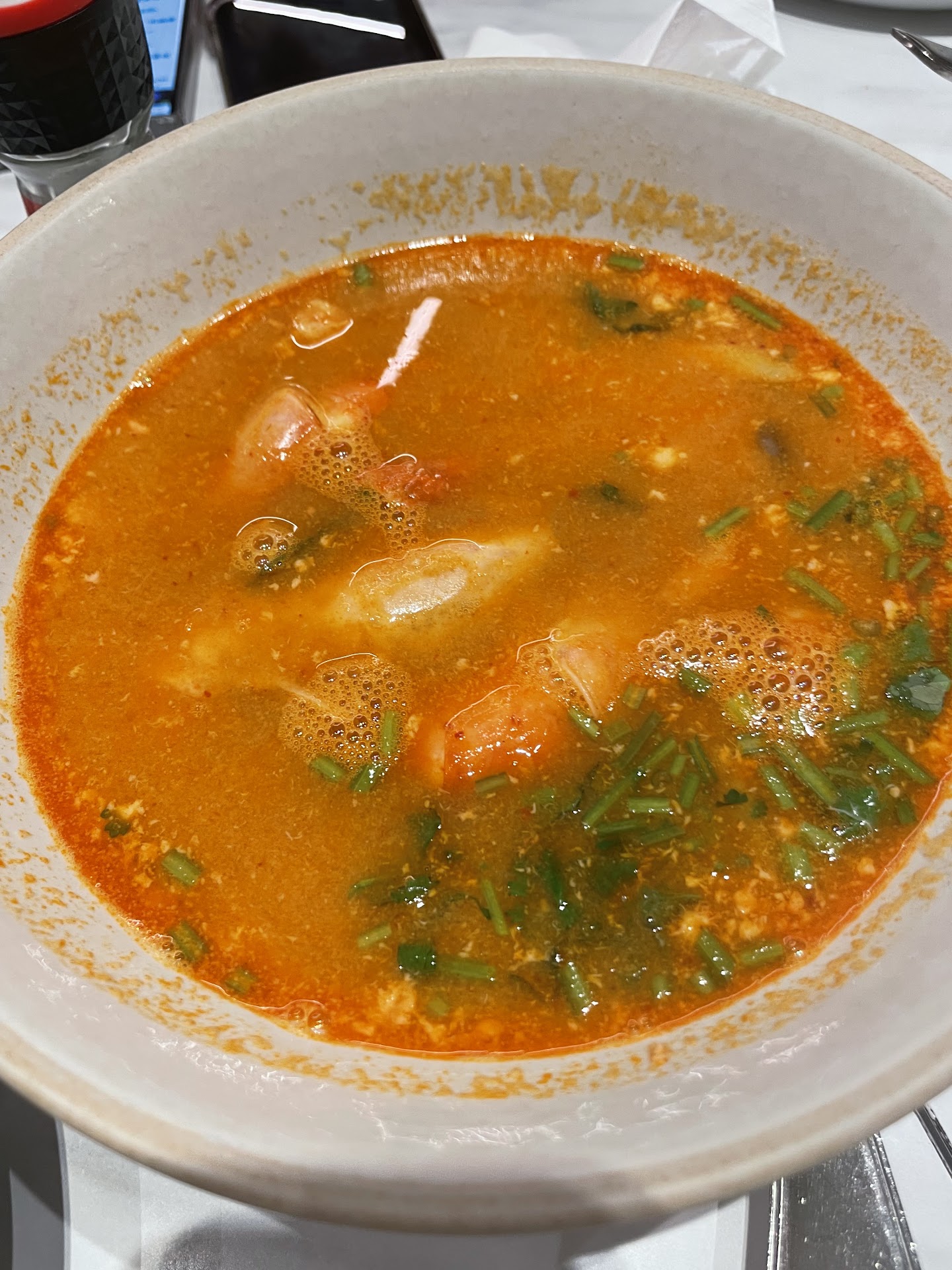Read moreMe and my friends had a bad experience here. We ordered river prawn tomyum soup with rice, tomato spaghetti, salmon with glass noodle salad, a dessert. The dessert, spaghetti and salmon are okay. But First thing is tomyum soup is unacceptable for this kind of restaurant. It is very different from what it’s shown on menu and no vege, just very watery soup with some lime leaves, lemongrass,prawns and mushroom pieces. Literally no vege at all. Apart from the ingredients, even the tomyum taste is just like putting some tomyum powder in hot water, when even any stall on street tastes great for tomyum in Bangkok. So so disappointed to spend almost 400bhat on this because of the taste. Even a restaurant at any random country would have better tomyum soup than this. Another thing is they bring out the takeaway salmon first within 10min when the tomyum has to wait like 30mins++ after making order. My thinking is they should cook and serve the dine in dishes first. And it’s always hard to call the server in this small restaurant. Whenever we call, the servers always show hand sign to wait and not even do eye contact, then they go near another server and talk among themselves. Not only one time. I...