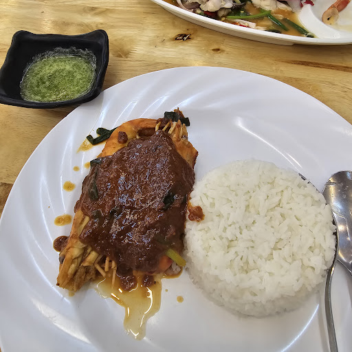 Read moreก๋วยเตี๋ยวอร่อยตามมาตรฐาน ข้าวมันกุ้งอร่อยมาก แกะเปลือกยากนิดนึงแต่ยอมสู้😁 ยำทะเลสดดี น้องๆส่วนใหญ่บริการดี แต่มีครั้งนึงสั่งก๋วยเตี๋ยวมาทานน้องลืมถามว่ารับน้ำไหม ก็เลยทานแบบไม่มีน้ำรอดูว่าจะมีใครเห็นไหม(ในร้านมีลูกค้า3โต๊ะ)จนคิดตังค์ แต่น้องก็ได้ยกมือขอโทษแล้ว อาหารบางเมนูนานไปหน่อยแต่เข้าใจได้เพราะเมนูอาหารเยอะมาก ที่จอดรถสะดวกมากเดินเข้าทางหลังร้านได้เลย เวลาฝนตกจะนึกถึงร้านนี้เพราะเดินไม่เปียก...