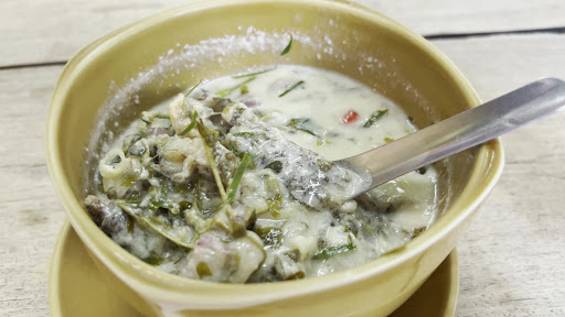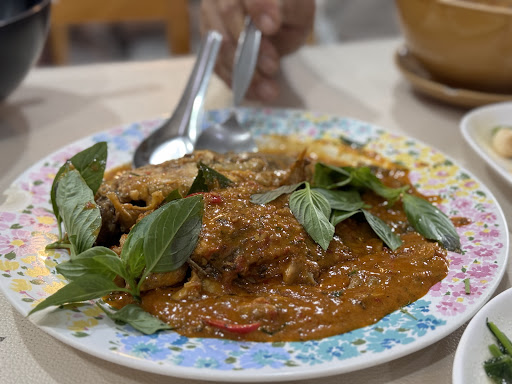I had a wonderful lunch at Kang Pa Loong Sa-Na, a Michelin Bib Gourmand restaurant located just north of Bangkok. The restaurant features Thai meat dishes with the generous use of herbs and spices of the forest as seasoning. I didn't order meat, but instead was impressed by their ability to deliver delicious garlic greens, rice and a scrumptious coconut fish soup full of fish, mushrooms, herbs and spices. It could have been one of the best meals I have had in Thailand! Although they don't serve Thai tea, they subbed a local sweet drink which was delicious. No one spoke English which made it even more adventuresome.