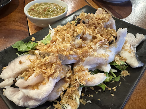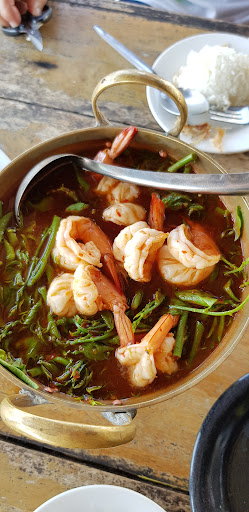We arrived for a late lunch.. around 2:45pm, so we were the only people at that time. 1st impressions of the place was warm and welcoming, like arriving at someone's home - very rustic, rickety, handmade wooden structure over the Chao Phraya River ..cutest little restaurant. The view is wonderful.. we could see fish swimming right under us - amazing. We found all the staff very helpful and kind, although non could speak English and the menu was written in %Thai (google translate didn't help in clarifying the menu). We ordered anyway, and the food was good, not amazing, but that's our fault for not selecting well.. can't tell you what dishes we chose from the menu. It was Boiled Rice, Saute Cabbage and Fried Chicken Wings, and an Egg fried Rice with Beef. Prices were reasonable, all the food including a bottle of water and a can of beer...