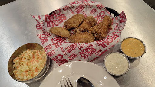 Chicken tasted bad, not fresh at all and badly prepared. Felt sick after eating, still do as I write this review. We were the only ones in the restaurant and they still forgot to bring more than half of our order. Had to literally show them the receipt and ask for the other stuff. The tastiest part of our entire meal was the ice in the drink. Also work environment...
