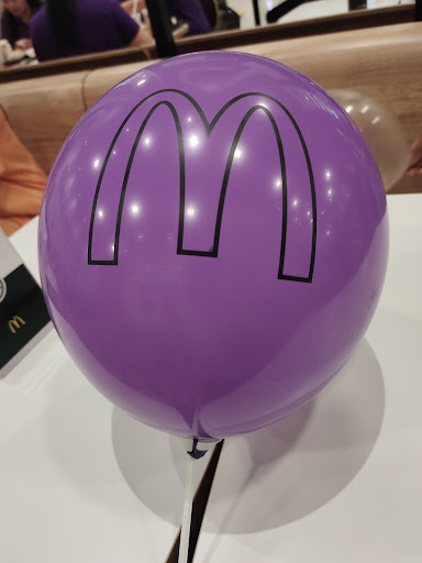 เมื่อร้านแมคมีลูกโป่งฟรีให้ ลูกชอบมาก เลยเข้าไปนั่งทานตากแอร์กันสักพัก