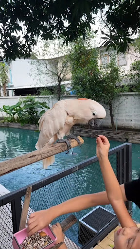 The cafe also houses a variety of other animals, some of which, in my opinion, shouldn’t be there. A lone Pademelon (miniature kangaroo) was confined to a small wire cage with a concrete floor. The poor animal was visibly distressed, pacing back and forth repeatedly, and its condition was alarming—it appeared to have mange. This was a heartbreaking sight and clearly not an appropriate environment for such an animal. I sincerely urge the owners to rehome the Pademelon to a more suitable sanctuary or environment where its needs can be properly met.