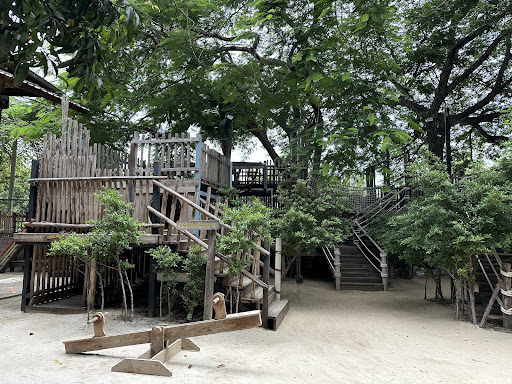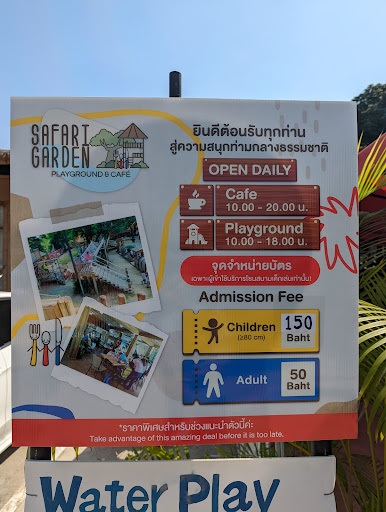 This place is great for kids of all ages. I had my boys from ages 6-1yo and they all had a great time. The fortress like structure is wonderful for imaginative play & the pool with the foam/bubble machine was a big hit. I would have given this place 5 stars but the animals in tiny lots, with no water and sheep clearly starving & in terrible condition made us sad. The pigs are literally kept on a concrete and wooden slab. No dirt or mud for them to keep moist & cool. One pig has visible wounds from dry skin, as another review said over a month ago. There was no water. I filled up a bucket and put inside their enclosure and both pigs drunk the entire contents in less than a minute. The next bucket the split over to create some wet ground to lay in. I don’t think animals are necessary in the place and it takes away from the fun. Please let them go. You have enough cool things in the yard without putting animal cruelty on display. Otherwise, we had a great time and will be back. Cafe has huge variety & well AC and big windows that overlook the yard. The pool is seperate entry fee so that was a surprise and a bit annoying but we know now. 250 baht for playground & 200 baht for pool per child (plus adults). The...