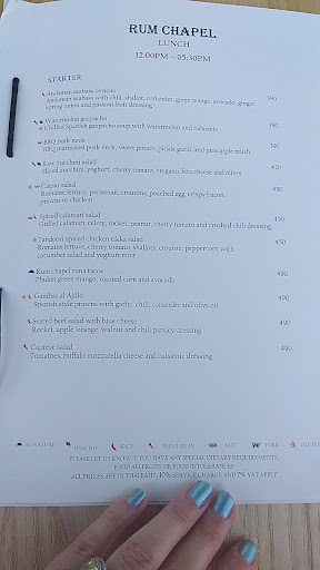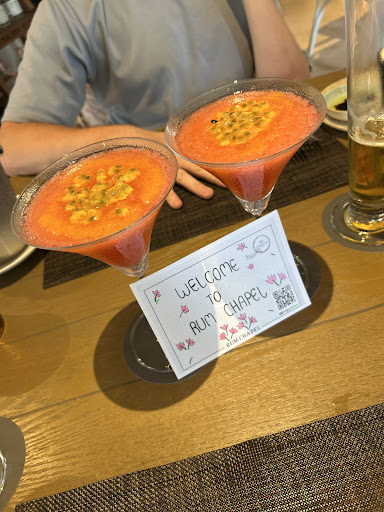Rum Chapel has a lovely pool side setting, friendly service, happy hour selected cocktails from 4pm-5pm and decent varied menu. Prices are a little steep but to be expected from a beautiful resort like Naka Island. They provided a healthy varied kids menu which is complementary if child under 5 yrs old is dining with an adult. The main menu Thai, European and Indian dishes including salads, pizzas, prawns, grilled snapper and Arabic and Indian inspired main courses. The prawn ceasar salad was excellent, large prawns and good serving size. Something for everyone in a lovely setting, neautral fresh indoors or outside tables on the sand by the pool overlooking the stunning sea. Definitely a great lunch/dinner spot whilst staying at The Naka Island...