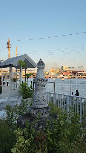 บรรยากาศ และการตกแต่ง: (5) เป็นร้านริมแม่น้ำเจ้าพระยา เห็นวิวเจดีย์เอียงเกาะเกร็ด และวิวสะพานพระราม 4 สวยงามมากๆ ร้านเป็นบ้านเก่ามาตกแต่งสำหรับเป็นร้านอาหาร มีทั้ง zone ในบ้าน, zone ศาลา และ zone แพริมน้ำ บรรยากาศดีทุกจุด ค่อนข้างโรแมนติก และผ่อนคลายมากๆ เป็นจุดเด่นของร้านนี้