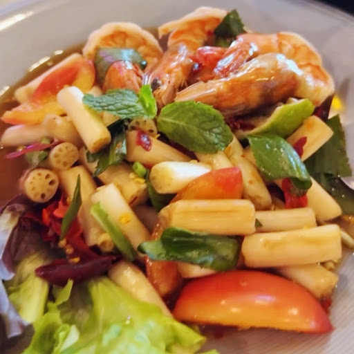 ร้านบรรยากาศแบบคาเฟ่ตึกแถวนั่งสบาย มีที่จอดรถหน้าร้าน การบริการดี อุปกรณ์ทานอาหารมีการแพคมาให้ดูสะอาด รสชาติดีระดับนึงเลยแต่ราคากลางๆค่อนไปทางสูงอยู่ สั่งไป 3 รายการ - โรตีแกงเขียวหวาน อันนี้อร่อยมากครับ แกงหอมมันและความเผ็ดกำลังดี แป้งโรตีก็ทอดมาฟูกรอบ กินด้วยกันนี่ถูกใจมากๆเลยครับ - เส้นหมี่น้ำยาปลาแซลมอน (จำชื่อไม่ได้แม่นนักเพราะแฟนสั่ง) อันนี้โดยวัตถุดิบโอเคเลยครับ รสชาติก็โอเค แต่ส่วนตัวด้วยความเป็นน้ำยา คิดว่ารสชาติอาจจะควรจัดจ้านกว่านี้อีกสักหน่อยครับ - ชาไทย ชอคโกแลต แฟรปเป้ (ไม่มั่นใจชื่อเหมือนกัน) อันนี้อร่อยดีครับ ชอคโกแลตด้านบนตัดหวานของชาไทยกับความมันของวิปปิ้งครีมได้ดีครับ โดยรวมๆก็รสชาติดีเลยครับ เพียงแต่โดยส่วนตัวคิดว่าราคาสูงสักหน่อยครับ (ทั้งหมด 3 รายการ รวมน้ำแร่กับน้ำแข็งเปล่า 1 แก้ว 590.-) ไม่แน่ใจว่าเพราะทำเลหรือเปล่า แต่ด้วยความมาจากข้างนอกคิดว่าค่อนข้างเข้ามาลึกพอสมควร