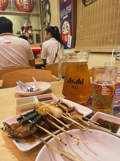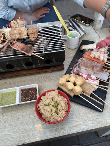 Read moreปิ้งย่างอิซากายะสไตล์ญี่ปุ่น มีทั้งบุฟเฟ่ปิ้งย่างเสียบไม้ไม่จำกัดเวลา และ อลาคาร์ท บุฟเฟ่เครื่องดื่ม เบียร์และไวน์ จำกัดเวลา2ชม. วันที่ไปลูกค้าเยอะ อาหารปิ้งย่างรอนานหน่อย รอประมาณครึ่งชม.หลังจากกดสั่ง พออาหารมาเราจึงกดสั่งเพิ่มอีกเพราะคิดว่าคงนาน สั่งมาเยอะอยู่ทานกัน2คน สุดท้ายเหลือประมาณ5ไม้ ทานไม่หมดมีค่าปรับ 200บาท เบียร์หากเหลือเต็มเหยือกโดนปรับเช่นกันนะจ๊ะ พนักงานร้านบริการดี เติมเครื่องดื่มให้ตลอดระยะเวลาบุฟเฟ่แบบรวดเร็ว ไม่มีสะดุด 🍻ถูกใจสายดื่มแน่นอน หากไม่อยากรอทางร้านปิ้งให้ นั่งโซนด้านนอก มีเตาปิ้งเอง ปิ้งไปดื่มไปสบายๆ ทางร้านไม่ได้จำกัดบุฟเฟ่เครื่องดื่มว่าต้องเหมือนกันทุกคน ใครดื่มบุฟเฟ่หรือไม่ดื่มแยกได้ ห้องน้ำในร้านไม่มี ต้องเดินข้ามถนนตรงข้ามร้าน ไม่เสียเงินหยอดเข้า แต่อนาคตไม่แน่เพราะมีตั้งประตูกรงหยอดเหรียญไว้ ใครดื่มเยอะปวดบ่อยต้องขยับเดินหน่อยนะ ดูราคาชำระเงิน คิดแยกตามประเภทบุฟเฟ่อาหาร+เครื่องดื่ม หากไปกันหลานท่าน อาจเกิดความสับสน โดยรวมแล้วดีเหมาะกับการนัดเพื่อน...