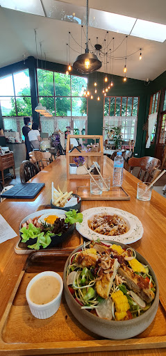 Very cute place, a bit difficult to find at first. Atmosphere and landscape outside was nice. But the canal was low, would be great when canal if full. The presentation of the drinks and dish are beautiful. Friendly and fast service. My only complaint is you have to pay first. So if later I decide to have desert I have to make another transaction. I like to have just one transaction. We had two deserts, ice cream with coffee(can't remember the name) and carrot cake. Ice cream was good. Carrot cake is my favorite cake and I have not found great carrot cake yet in Thailand. The cakes here are very dense and heavy, not light and spongy which I'm used to having. Maybe it's the flour they use here or the weather. I'm not a baker so I don't know why the cakes in Thailand are heavy.