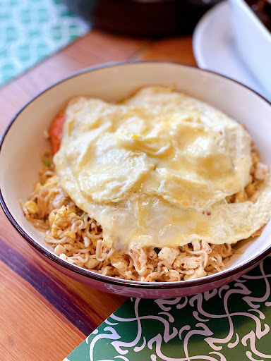 Stir-Fried Instant Noodles with Shrimps and Minced Chicken with the signature omelette egg simple stir fried instant noodle, crowned with one silky omelette. Amazingly humbling